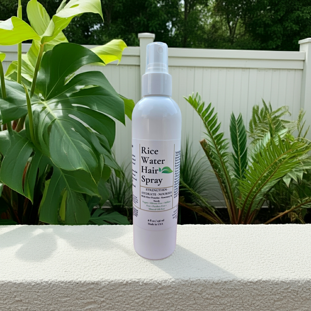 This handcrafted Fermented Rice Water Growth Spray blends Jasmine + Basmati rice with an herbal base of rosemary and nettle tea for stronger, healthier hair. Enhanced with aloe vera, witch hazel, and essential oils, it hydrates, refreshes, and helps promote growth — without the DIY hassle.